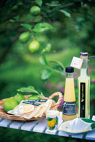 「大三島リモンチェッロ」(¥2,100) をはじめ、レモンスイーツも販売。