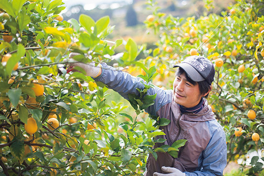 海を望む畑で柑橘の栽培を行う。