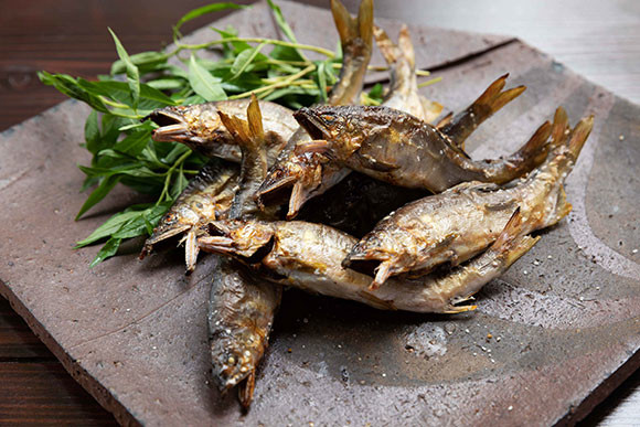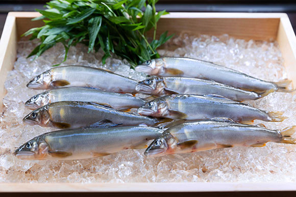 鮎の旬は6〜8月。いまでは資源保護のために11月〜5月は禁漁となっている場所が多い。