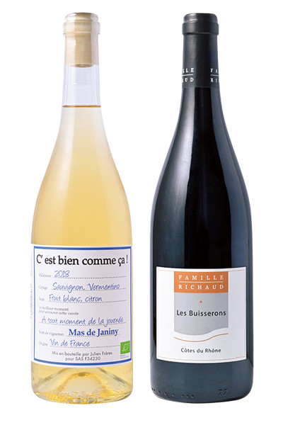 左:ラングドックの爽やかなソーヴィニヨンブラン。後味もすっきり。「C’est Bien Comme Ça!」ボトル¥4,620