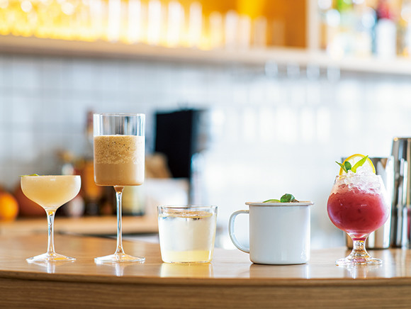 気鋭のクリエイティブチーム、301とバーテンダーやバリスタがコラボして誕生したカフェバー。フグレンなどで活躍した野村空人が監修するオリジナルモクテルは、ノンアルコールジンを使ったジントニックなど。No.1からNo.6までのドリンクは、ひとつの番号につきカクテルとモクテルの2種類を用意。甘味・苦味・酸味のバランスを重視して作るモクテルは、まさにカクテルさながら。