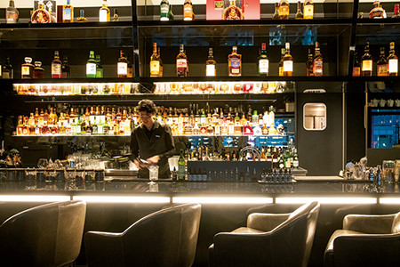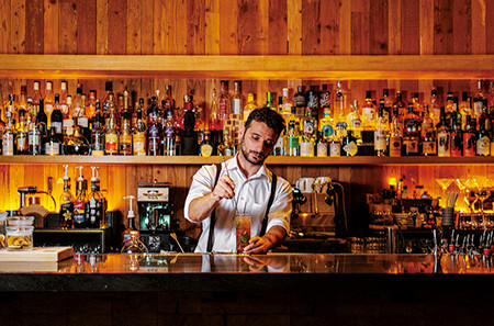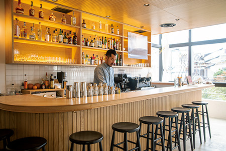 国籍もバックボーンも多様な、個性あふれるメンバーが立つカウンターは10席。ラウンジ全体で80席ある。TRUNK(LOUNGE)
