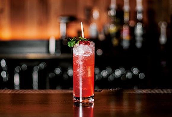 リンゴジュース、ザクロ、ライムジュースとミントを使った「ポム・アンド・ジュエリー」¥1,000。モクテルは17時から提供。
