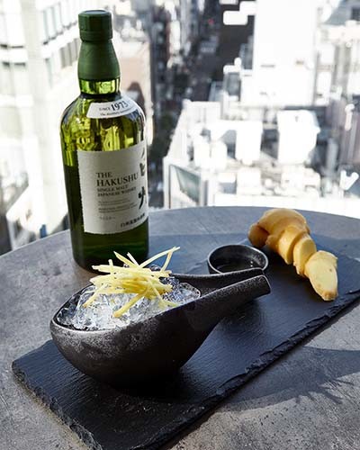 白州に、生姜シロップ、柚子ジュース、柚子ビターズなどをミックス。柚子好きにはたまらない。「柚子ジンジャーモヒート」¥2,000(サービス料10%込み、税別)