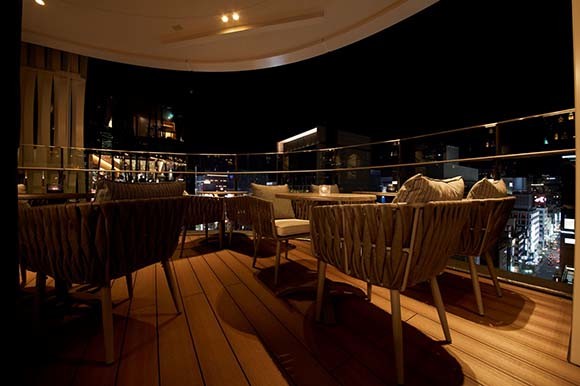 大人の夜にふさわしい銀座のテラス席。10階のスパイスラボトーキョーでのディナー前のアペリティフや、食後のリラックスタイムに利用するのもおすすめ。