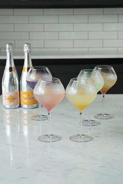 カクテルで楽しむ、甘口のヴーヴ・ クリコ リッチ。「ヴーヴ・ クリコ リッチカクテル」各¥1,100