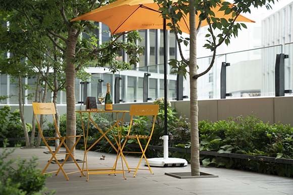 ヴーヴ・ クリコがグローバルで提案するクリエイティブなプログラム「ヴーヴ・ クリコ ザ ニュー メーカーズ」は、あらゆるクリエイティブ領域にて活躍する創造者”ザ ニュー メーカーズ”と一緒に、インスピレーションを届ける情報発信や、ユニークなコミュニティの形成を目的とするもの。日本での企画第1弾として、ヴーヴ・ クリコは、森枝 幹シェフによってプロデュースされたタイ料理店「chompoo(チョンプー)」とコラボレート。話題のタイ料理とヴーヴ・ クリコのフードペアリングによって、斬新なマリアージュが誕生した。メゾンのコードカラー、クリコイエローのパラソルやテーブルが配された開放感あるウッドデッキ、テラス・クリコにぜひ席を取って!