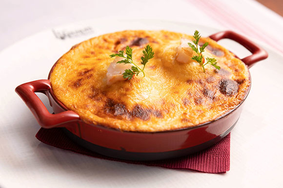 同じくコースの料理より、ポコシェフの祖母の名前を冠した「リヨン風クネル モリセットゥおばあさんスタイル ナンチュアソース」。