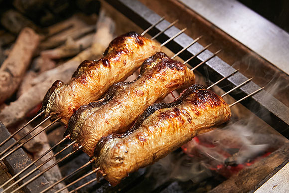 紀州備長炭で丁寧に焼き上げられていく。