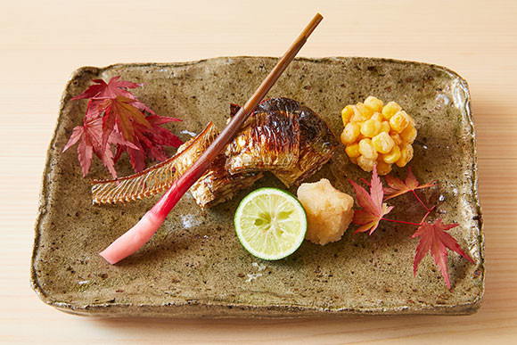 「秋刀魚の塩焼き」は¥14,300のおまかせコースの一品。