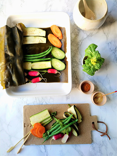 家に戻り、採ってきたものを眺めてゴキゲン! で思いついたのは野菜の昆布〆。