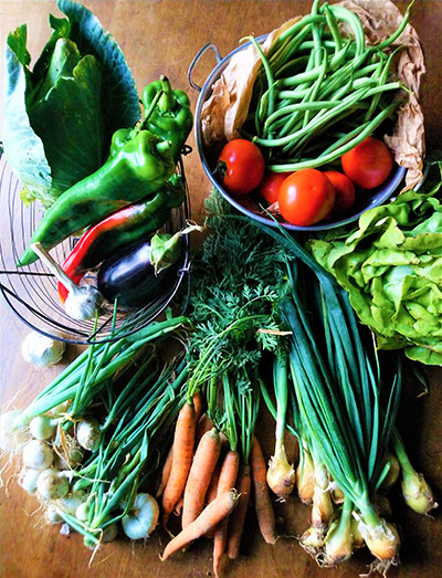 今日の収穫! これらの野菜を使った普段のおかず、“農園ごはん”はこちらから。