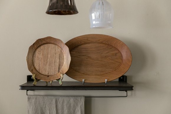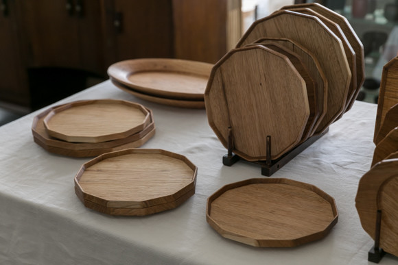 —新作の刳り貫き丸深盆も、定番の細長いオーバル皿も、他にはないダイナミックなかたちです。どれも手を添える部分のエッジがキリッとしていて気持ちがいい。底に厚みがあるのもいいですね。無垢材の色味ですが、おもてなしなどハレの食卓でも使いたくなります。
