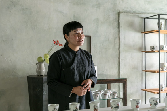 松本:景徳鎮は、日本の有田や波佐見のように徹底した分業制で、専門の職人さんの技術を間近で見ることができました。絵付けの道具はほとんど手作りで、針金や傘のほねの部分など使い古しのものを応用して描いたりするんですけど、それでも職人さんたちは、伸びやかかつ繊細なタッチの絵を、連続していくつもさらりと描いてしまう。手技の凄さに憧れましたね。すこしでも近づけるよう、土や釉薬にもますますこだわって制作してみたいと思っています。