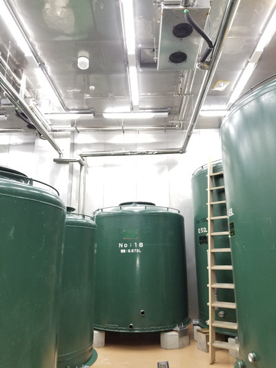 蔵は現在コロナウイルス感染症対策のためしばらく見学不可だが、通常であれば事前web予約制で公開をしている。冬の造りの時期はガラス越しに見学することも可能。造りの順番に合わせて3階から2階へと工程を踏んでいき、1階から貯蔵タンクへと導線が整っている。