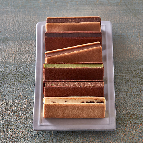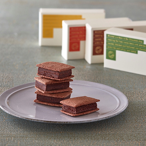 カカオの特徴を最大限に引き出す焙煎方法や配合にこだわりながら、さまざまなスイーツを創り出す自由が丘の名店のシグネチャー。「マジドカカオ」は、薄くサクッとしたクッキーで濃厚なチョコレートをサンドしたもの。アーモンドクランチやミルクピスターシュは、ナッツを砕いてキャラメルがけしてつくる自家製ペーストのザクザクとした食感と香ばしさで特におすすめ。飽きさせない楽しいフレーバーで、贈り物にもおすすめだ。