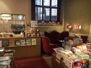 もう一軒は、若者に人気のセーデルマルム地区にある書店、ボークスルーカレン(本を貪る人という意味)。ここは、併設のカフェで本にちなんだお菓子が提供されていておもしろい。たとえば、バールブロー・リンドグレン作『ロランガ』。お父さんのロランガ、おじいさんのダッタヤング、そして息子のマサリンの変わった日常の物語だが、息子の名の由来になっている、アーモンドペーストを使ったスウェーデン伝統の焼き菓子が食べられる。また、映画にもなった『チャーリーとチョコレート工場』に出てくるようなチョコレートマフィンなど、手作り感たっぷりのお菓子でお茶の時間が楽しめる。また、本以外におもちゃや絵かき道具なども売られており、なかなかファンシーな世界なので、童話の中に入り込んだように時間を忘れてしまう。