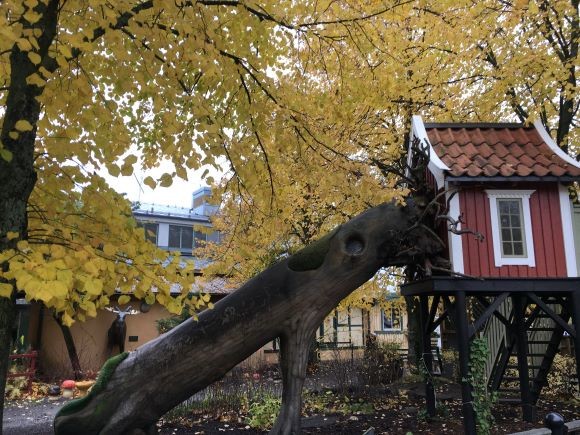 まず、スウェーデンでいちばん大きな児童書専門店、ユニバッケン。ここは書店というより、アストリッド・リンドグレーンの世界を表現した、子どもから大人まで一緒に楽しめる屋内娯楽施設だ。リンドグレーンの作品に基づいた芝居や歌などのイベントをはじめ、おとぎ話に出てくるようなシーンを実体験できたり、子どもに限らずリンドグレーンファンにはたまらない場所だ。