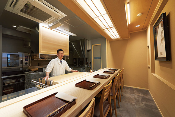 荻野店主は33歳。京都の嵐山吉兆、銀座の小十、奥田を経て独立した。