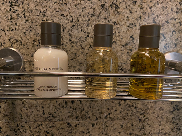 ステイケーションでは、よい睡眠をとることも重要な要素。シモンズの寝心地のよいベッド、ラグジュアリーホテルならではの肌触りのよい上質なリネンやタオル、バスローブ。さらに、温かな気分にさせてくれる照明も、快適な眠りへと誘ってくれる。ちなみにバスアメニティは、日本ではここだけとなる、ボッテガ・ヴェネタ。歯ブラシやヘアブラシは木製。