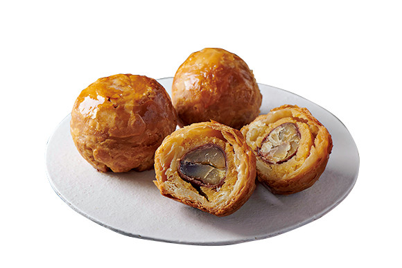 球状のパイ生地の中から丹波栗が1粒現れる「丹波栗のパイ くりまる」1個¥594