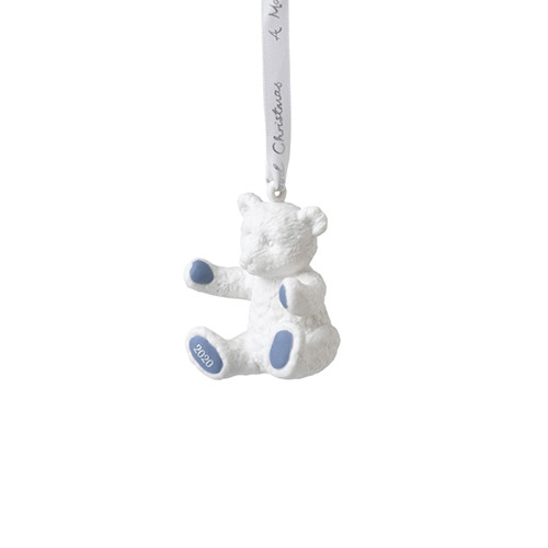 ホリデイ オーナメントの中でも、毎年年号入りで発売されるテディベアは定番のひとつ。誕生したばかりの赤ちゃんに、初めてのクリスマスの記念として贈る人が多いそう。ピンクと2色展開。「ホリデイ オーナメント テディベア 2020 」ブルー (H7.5cm)¥4,950/ウェッジウッド