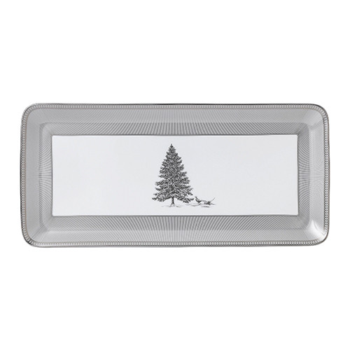 横長のプレートはテーブル中央に置きやすい形。サンドウィッチはもとより、フィンガフードやスイーツのトレイとしても便利に使えるアイテム。「ウィンターホワイト サンドイッチトレイ ツリー」(W34×H15.5 cm )¥11.000/ウェッジウッド