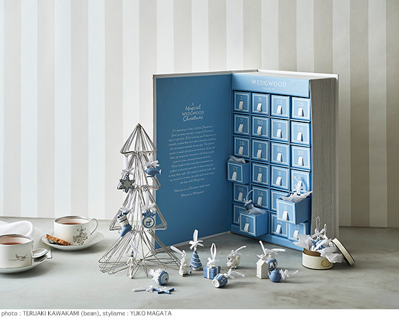 毎年あっという間に完売してしまう大人気の「ホリデイ アドベントカレンダー」(数量限定、24個のオーナメント入り)¥71,500/ウェッジウッド。今年はブック形。箱を開けると24個の引き出しが現れる。