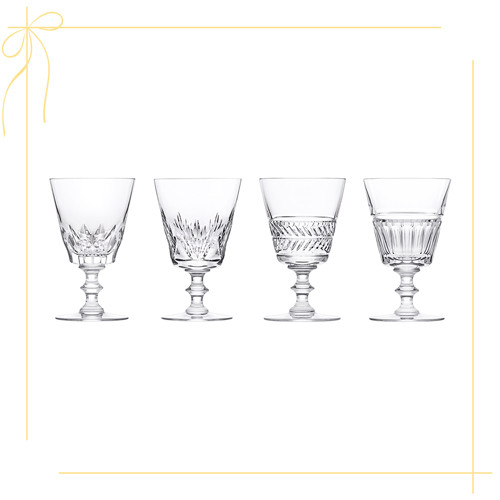 4つのグラスから成るコレクションは、ヴェルサイユ宮殿とマリア・テレサ、マリー・アントワネットら歴史に名を遺す4人の王女たちへのオマージュ。ベベルカットで描かれた太陽のような王冠のモチーフなど、最高峰のクリスタルブランドがそれぞれのグラスに込めた物語と技術の高さにため息。
