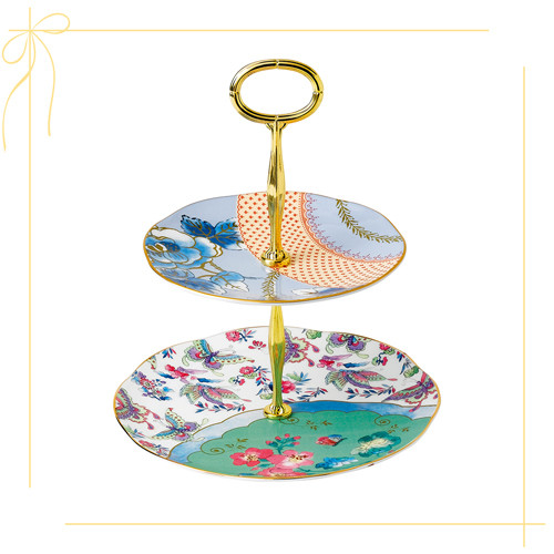 「バタフライ ブルーム」2段ケーキスタンド(Φ21㎝、Φ16㎝)¥13,200/ウェッジウッド(ウェッジウッド)