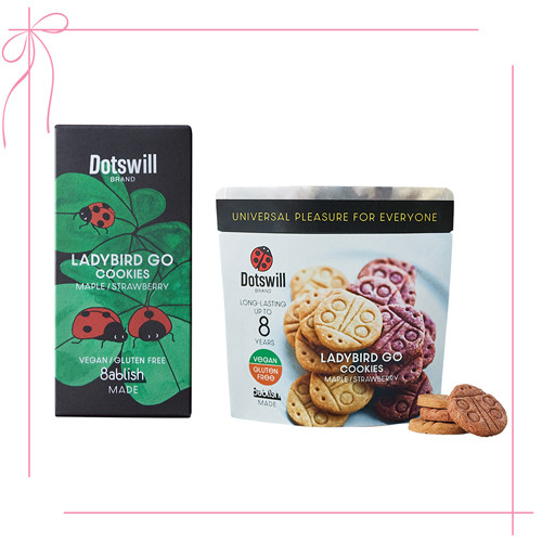 右:レディーバード ゴー クッキーズ(8年保存/メープル味8枚、イチゴ味8枚入り)¥2,268/ともにドッツウィル