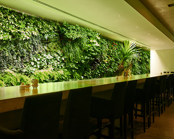 フランスの現代美術家・植物学者のパトリック・ブランが手がけた壁面装飾『バーティカル・ガーデン』が目を引くバー。カクテルはもちろん、ヴィンテージのウィスキーやブランデー、そして「ペリエ ジュエ ブラン・ド・ブラン」が楽しめる。
