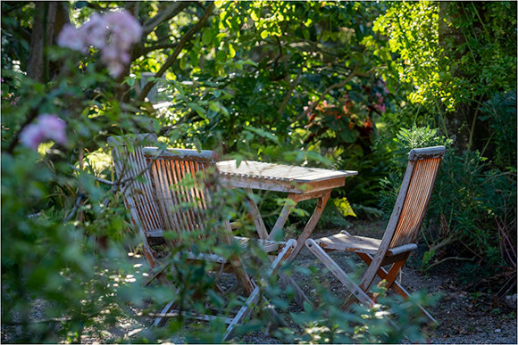 椅子の背が掠れているところがいいですね。暖かくなったら、ここで英国式アフタヌーンティーでもいかがですか。