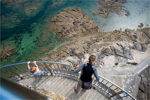 途中で窓からの海を眺めながら、階段を登っていきます。