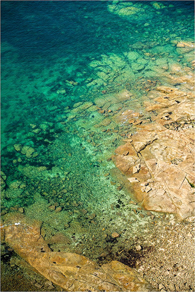 上から眺めるエメラルド色の海。もう1枚だけ、、と撮っていて、「早く降りてくださいー」と急かされたのはワタシです。すいません。