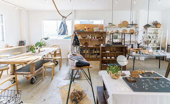 東京のライフスタイルショップに携わっていた女性オーナーが、長年の夢を実現。暮らしに寄り添う日用品を集めた、ギャラリーのようなショップをオープンさせた。大分の作家を中心に、竹芸、陶芸、工芸品など幅広く取り扱う。店内の一角にはカフェスペースを設え、ドリップコーヒーや自家製シロップのドリンクなどを提供している。飲み物を片手にオーナーとお喋りしながら、お気に入りを探してみよう。