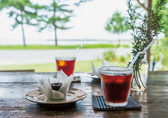 どこかノスタルジックでおおらかなムードが漂うこちらは、国東半島の北東の端にある向田海水浴場の、海の家を兼ねたコーヒーショップ。古い小屋をセルフリノベした店内では、自家焙煎コーヒーと古道具を扱っている。コーヒー豆は常時10〜12種類を揃え、オーナーお手製のカヌレほか、家族が焼いたクッキーなど焼き菓子もラインナップ。コーヒー片手に海風にあたりながら、海辺で過ごす一日を満喫して。
