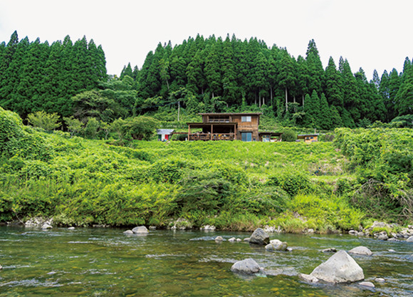 百名山のひとつ、祖母山を水源とする奥岳川の川辺に佇むカフェ。豊後大野市は、「おんせん県・おおいた」にあって唯一、温泉のない町なのだが、こちらにはオーナーが自ら建てたサウナ小屋があり、サウナと目の前にある河川プールを交互に利用する楽しみ方も。今後は川辺でテントサウナのイベントも開催予定。