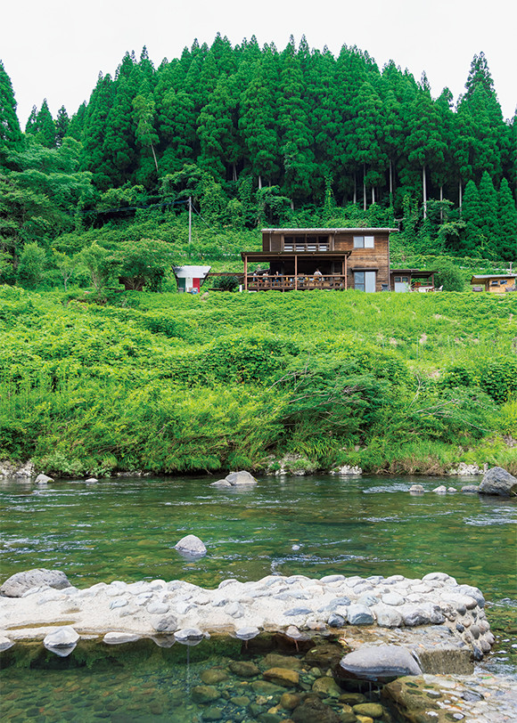 大分県で唯一、温泉のないエリア、豊後大野には奥岳川の流れを利用した河川プールがある。奥に見えるのはカフェ パラム。