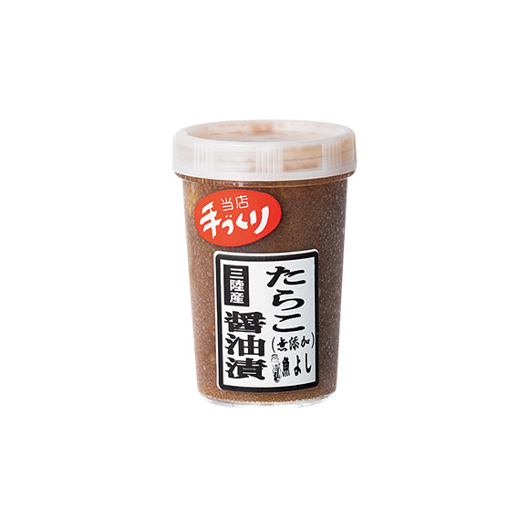 大槌産の生たらこを、醤油と酒で漬け込んだ珍味。ネギや鷹の爪がアクセントになり、白米にのせればまさに飯泥棒! 野菜や冷奴にかけて、お酒のアテとしても。180g ¥399
