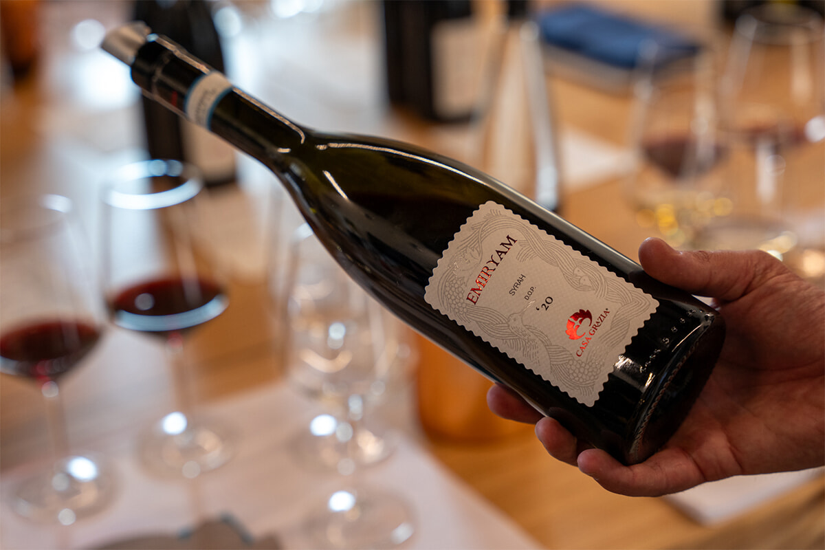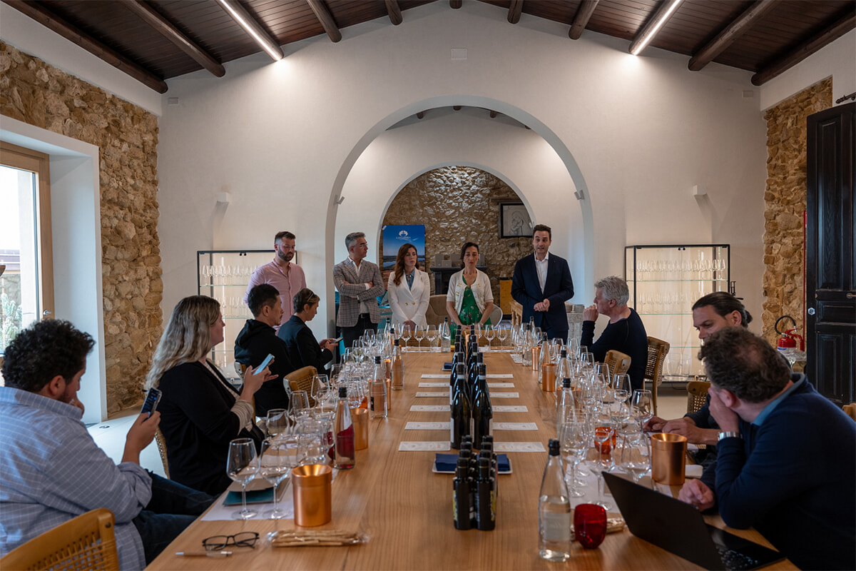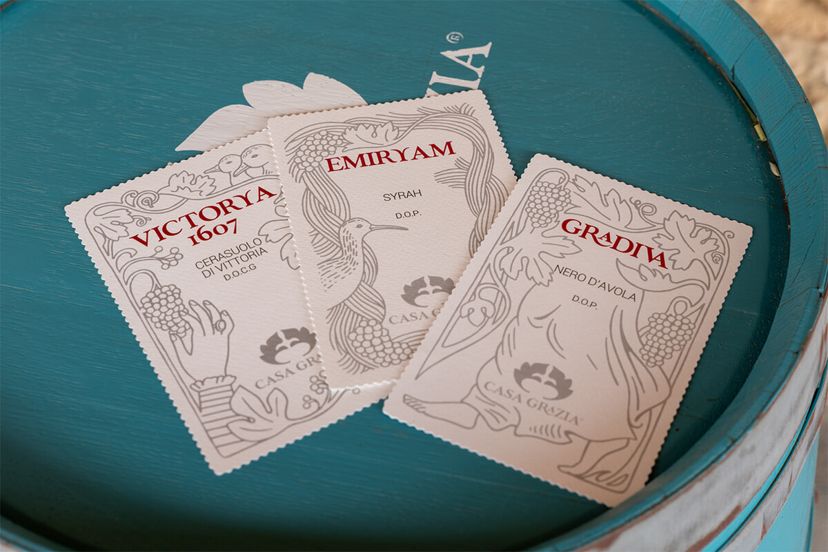 さて、今回のシチリアワインもヴィットーリア地域から。ひとつ目のワイナリーはCasa Grazia。ブランドカラーが、シチリアの海をそのまま映したような青です。