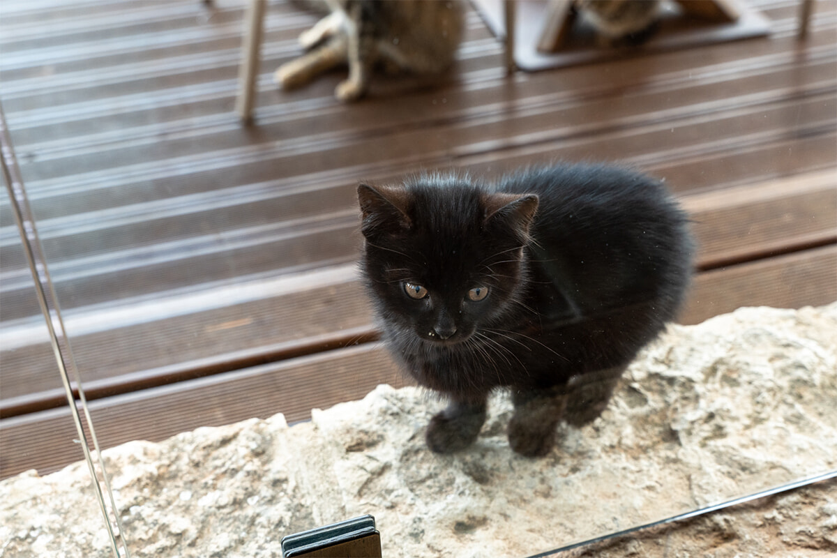 朝食テラスでは黒猫に遭遇。コニチハ。