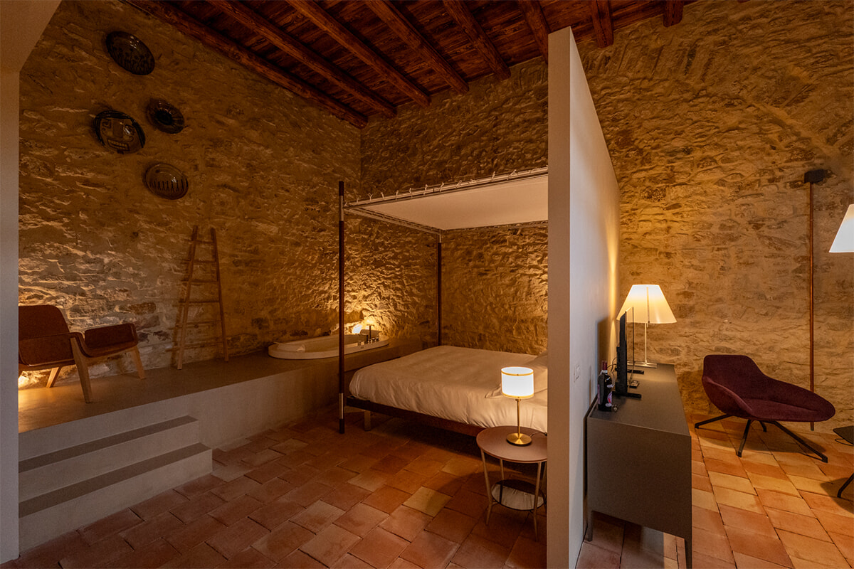 宿泊したのは新しく改装された棟で、簡易的に壁で仕切られた大きなスタジオタイプ。ベッドサイドにはジャグジー付きのバスもございます。
