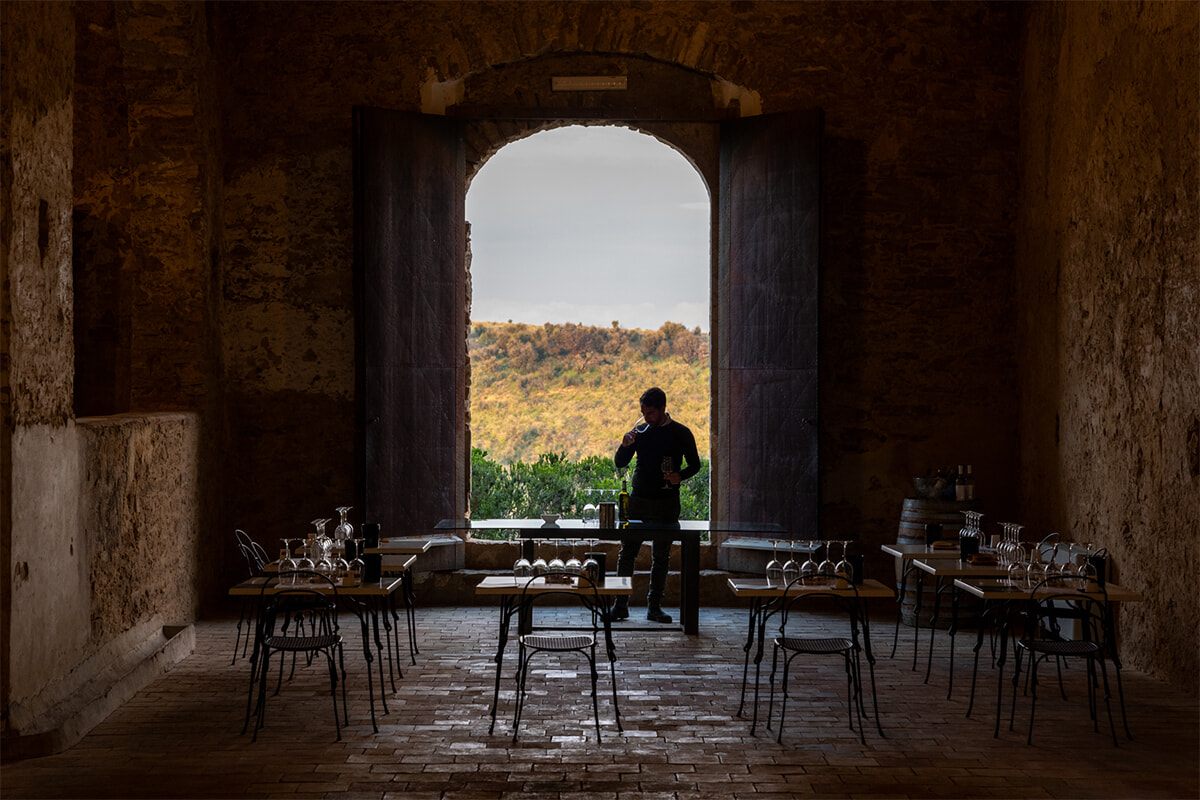 こちらは試飲の準備をする、醸造責任者のマルコ・パリジ。いや、もうロケーションがすごいから。