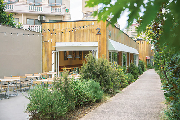 線路跡地の緑豊かなログロード代官山に誕生。隣には本業のスニーカーショップ、SNS トウキョウがある。