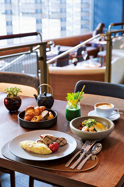 2021年1月に、開業3周年を迎える同ホテル。ニューノーマル時代に対応したビュッフェのメニューはQRコードで読み取るなど、上質なライフスタイルホテルならではの配慮が。ビュッフェは50種以上の料理が登場するが、エッグステーションでオーダーする卵料理や焼きたてのパン、甘い香りに心くすぐられるヴィノエワズリーを目当てに訪れるゲストも多数。ヴィーガンティラミスなど、デザートの充実ぶりも魅力的だ。