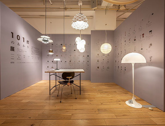 3月28日まで開催している『101灯のあかり展』では、半世紀以上も前に北欧で生まれ、世界中で愛され続けている灯りの定番をはじめ、イタリア・ミラノサローネなど海外のデザインイベントで注目を集めた話題作、アクタス初登場の新作まで、さまざまなデザインの照明が大集合。