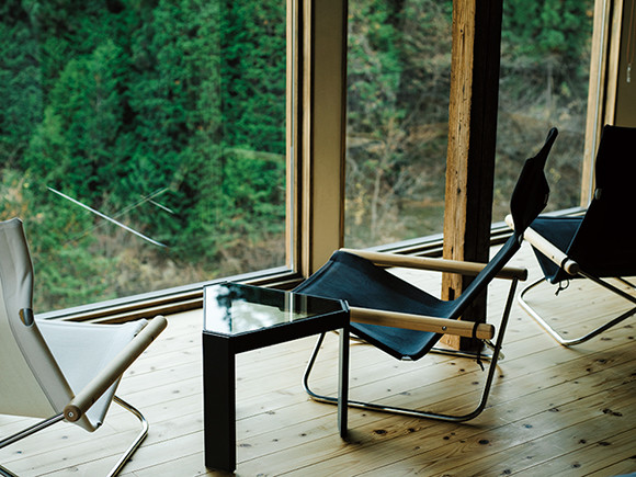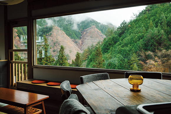 東京から車で約2時間、人口約700人の、山梨県の小さな村にある古民家を改装したニッポニア 小菅 源流の村 崖の家は、都心では叶わない極上のリトリート体験を提供してくれる。日中はニーチェアにゆったりと腰掛けてコーヒーを飲みながら、ブナやミズナラなどの美しい原生林に囲まれたマウントビューを満喫。夜は、小菅村で育ったとれたての川魚や野菜を自分たちの手で調理して味わい、ペレットストーブの暖かさに包まれて、お酒を片手に談笑する。近くにコンビニもなければ、テレビもない。だからこそ流れるスローな時間のなかで、幸せなひとときを過ごして。