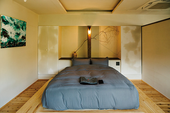 1階はベッドスペース。KONAGATA 1にはクイーンサイズのダブルベッドが2台用意されていて、大人4名での利用も可能。