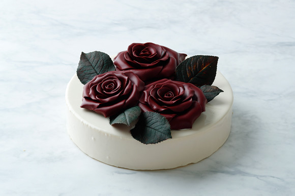 フランスの伝統菓子マルジョレーヌにペリゴール産トリュフを加えて、現代風にアレンジ。ベースにはアーモンドやヘーゼルナッツなどをたっぷり使用。スポンジ、チョコレートガナッシュ、プラリネクリームの層に、ナッツやチョコレートと相性抜群のトリュフ風味のクリームを合わせ、ホワイトチョコレートでコーティング。艶やかなバラの飾りも目を引く。「ガトー マルジョレーヌ オゥ トリュフ」¥41,040(数量限定)*購入日の3日前までに要予約。